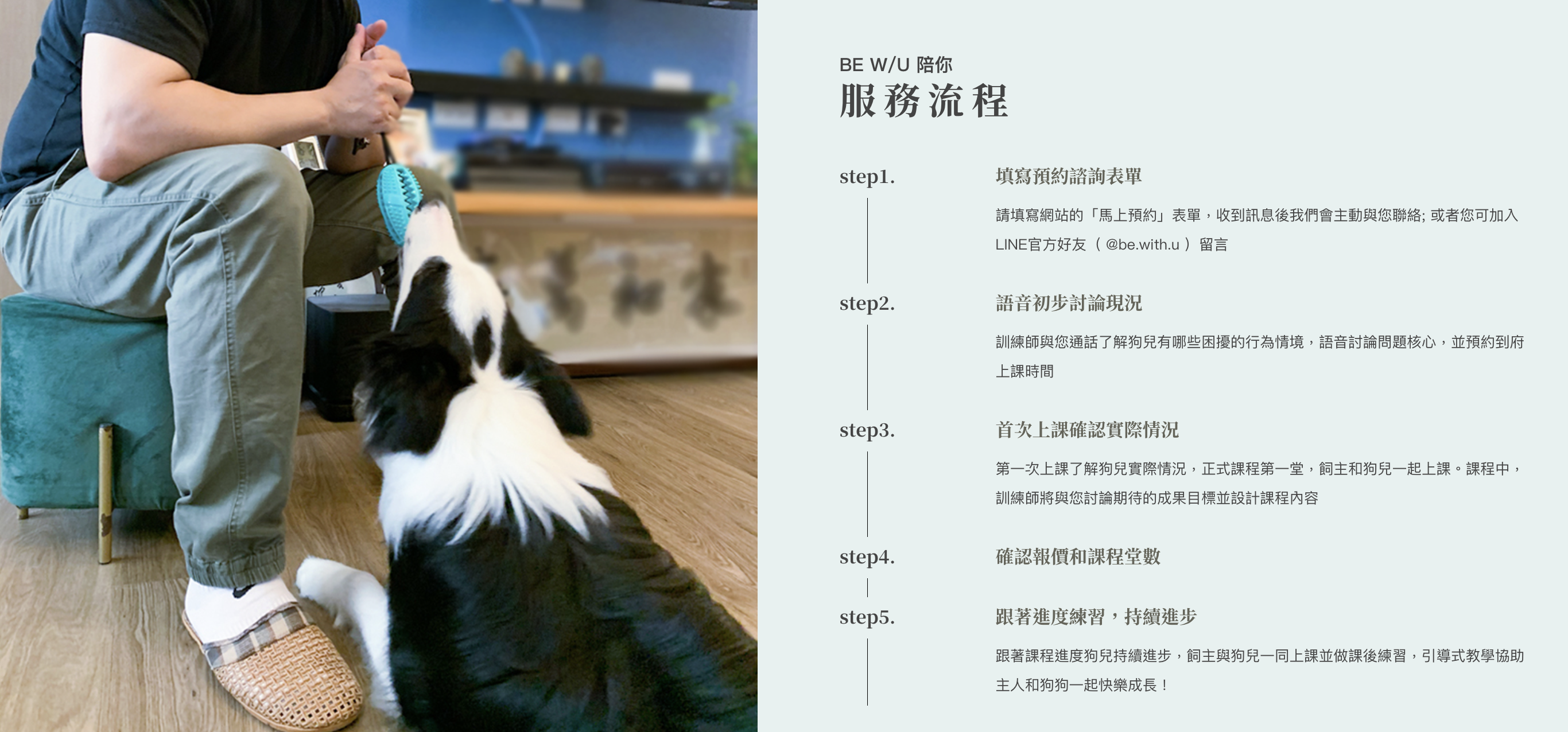 1. 官網填寫預約表單後,會先與您語音聯絡了解狗兒有哪些困擾的行為情境