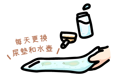 可以使用最常見的尿墊,方便整理和觀察刺蝟的排便量,也可以用木屑、玉米砂、報紙、衛生紙,這些都可以用 !