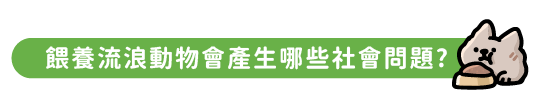 4. 流浪動物繁衍增多,造成社會負擔 : 當動物吃飽喝足時,自然會繁衍後代,若沒進行絕育,就會無止盡的一直生養下去,越養越多,社會的負擔也會越來越重,投餵前必須確保動物已進行絕育,避免讓流浪的地獄一直延續下去。