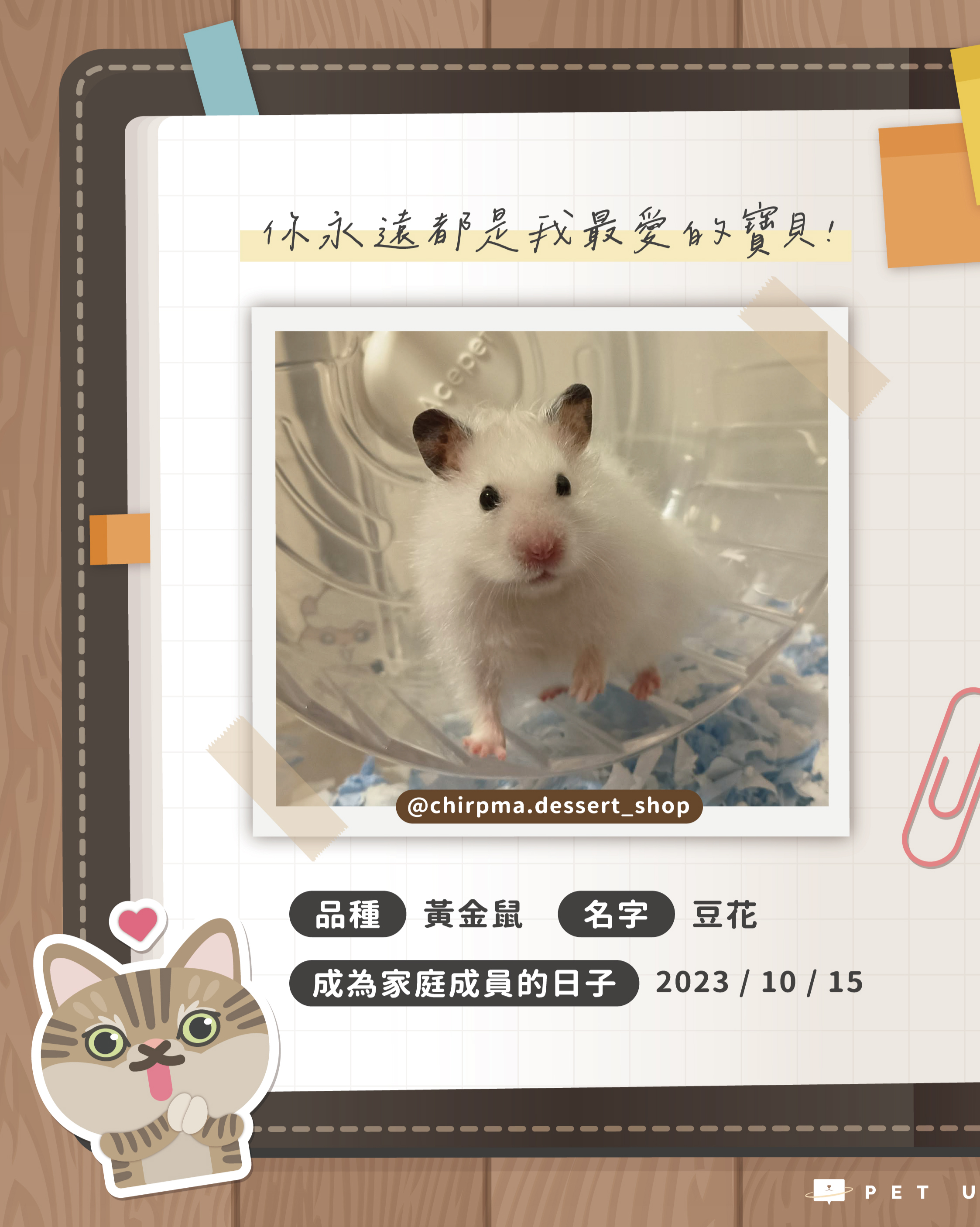 這次的主角是可愛嬌小的黃金鼠-豆花~ 💕