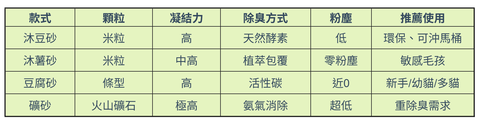 這裡萌編幫大家整理了四款貓砂的差異性給大家做個參考唷!