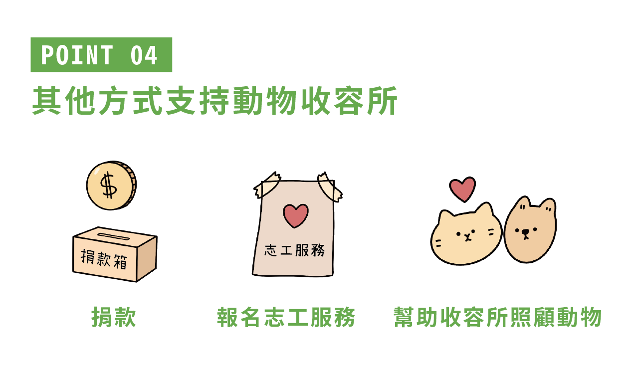 除了捐贈物資,還可以考慮其他方式來支持動物收容所。例如,捐款以幫助收容所支付日常運營費用,或者可以報名志工服務,幫助收容所照顧動物或參與活動。無論採取哪種方式,您的支持將對動物收容所的運作產生積極的影響,幫助更多的動物找到溫暖的家。