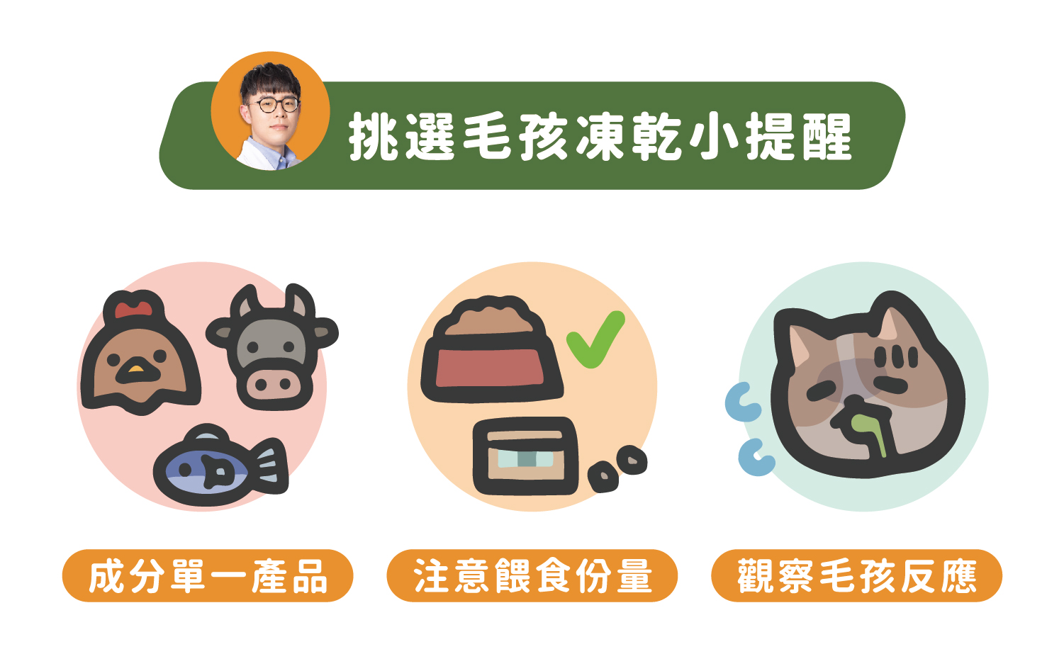 注意餵食份量:凍乾雖好但畢竟是零食,還是要以正餐主食為主,零食適量就好。